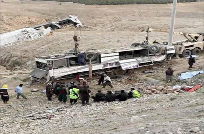 बस दक्षिणी अफगानिस्तान से हेलमंद और कंधार के यात्रियों को लेकर आ रही थी। गृह मंत्रालय के प्रवक्ता अब्दुल मतीन कानी ने बताया कि यह दुर्घटना लापरवाही से वाहन चलाने के कारण हुई, जिसमें 27 लोग घायल भी हुए हैं।इससे एक सप्ताह से भी कम समय पहले पश्चिमी हेरात प्रांत में करीब 80 लोगों की मौत हो गयी थी।