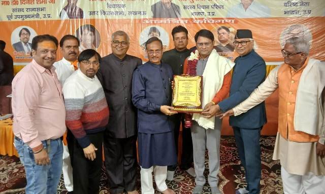 लखनऊ। पं.दीन दयाल उपाध्याय साहित्यिक सेवा संस्थान उ.प्र के तत्वावधान में आज देर शाम शिव पार्क, शिव नगर-खदरा में अखिल भारतीय कवि सम्मेलन एवं सम्मान समारोह का आयोजन किया गया। शिवरात्रि के अवसर पर आयोजित कार्यक्रम में मुख्य अतिथि राज्यसभा सांसद एवं पूर्व उप मुख्यमंत्री दिनेश शर्मा, विशिष्ट अतिथि डॉ. नीरज बोरा उत्तरी क्षेत्र विधायक और पं. आदित्य द्विवेदी ने अम्बेडकर नगर के साहित्य मनीषी अभय सिंह निर्भीक को पुष्प गुच्छ, अंग वस्त्र, स्मृति चिन्ह और प्रशस्ति पत्र भेंट कर वर्ष 2026 के पं. दीनदयाल उपाध्याय साहित्यिक सेवा सम्मान से सम्मानित किया। डॉ सर्वेश अस्थाना के मंच संचालन में आयोजित अखिल भारतीय कवि सम्मेलन में प्रतापगढ़ राजस्थान से पधारे कवि पार्थ नवीन ने सुनाया ” मेरे दीवाने से यदि हो गया विवाह मेरा ससुराल जा कर दीवानी बन जाउंगी, सेठजी के बेटे से विवाह यदि हुआ मेरा ससुराल जा कर सेठानी बन जाउंगी, राजाजी के बेटे से विवाह यदि हुआ मेरा ससुराल जा कर के रानी बन जाउंगी, सरकारी नौकरी वाला मिला तो खुशी खुशी ससुराल जा के नौकरानी बन जाउंगी। इसी क्रम को आगे बढ़ाते हुए अयोध्या से आईं कवियित्री रूचि द्विवेदी ने कहा व्यर्थ का राग रागने वाले बंद आंखों से जागने वाले, अप्सराएं तुम्हे मुबारक हों हम हैं वैकुंठ त्यागने वाले। दिल्ली से आए कवि मनवीर मधुर की पंक्तियां थीं शिवजी मन तो बहुत सरल है, पर थोड़े मतवाले भी हैं, देवों के देव और कहते हैं बहुत निराले भी, अगर समझना चाहो शिव को, एक वाक्य में तो ये है, भोले, भोले को भोले हैं, पर भाले को भाले भी हैं।