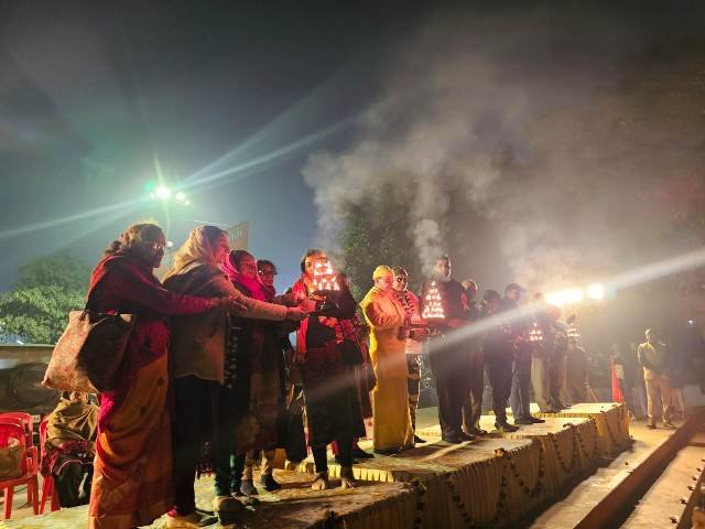 लखनऊ। सनातन महासभा की ओर से पौष पूर्णिमा पर सनातन समागम एवं 147 वीं आदि गंगा माँ गोमती महाआरती का आयोजन शनिवार को झूलेलाल वाटिका, गोमती तट पर किया गया। मंगलाचरण, स्वस्तिवाचन, पुष्पांजलि व शंखनाद के साथ 07 भव्य मंचो से पूज्य स्वामी आनंद नारायण जी एवं स्वामी धीरेंद्र जी के सानिध्य में हुई। महाआरती में मृदंग, मंजीरा, ढोल, तासे, शंख की ध्वनि से पूरा प्रांगण गुंजायमान रहा। अध्यक्ष डॉ. प्रवीण ने बताया कि महाआरती के पूर्व पूर्णिमा पर नए वर्ष 2026 को नशा मुक्त अभियान वर्ष बनाए जाने को लेकर सामूहिक संकल्प श्री गणेश वंदना के साथ आगे बढ़ाने हेतु चर्चा की गयी।