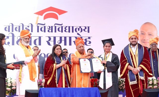बीबीडी यूनिवर्सिटी के प्रो चांसलर विराज सागर दास ने मुख्यमंत्री योगी आदित्यनाथ का स्वागत करते हुए कहा कि यह खुशी की बात है कि छात्रों का मार्ग दर्शन हमारे प्रदेश के यशस्वी मुख्यमंत्री योगी आदित्यनाथ द्वारा हो रहा है। आज का भारत युवाओं का भारत है और आप युवाओं के प्रेरणा स्रोत हैं। युवा शक्ति ही राष्ट्र की गति, तरक्की और दिशा तय करती है। सीएम के नेतृत्व में यूपी में युवाओं के लिए समग्र विकास और उत्थान के लिए हर क्षेत्र में काम हो रहा है। पिछले नौ वर्षों में युवाओं के कौशल, रोजगार और उद्यमशीलता की अनेक योजनाएं शुरू की गर्इं हैं। इन्हीं में से स्वामी विवेकानंद युवा सशक्तीकरण योजना के तहत विद्यार्थियों को लगभग 50 लाख स्मार्ट फोन और टेबलेट का वितरण किया गया। हमें खुशी है कि इस योजना का लाभ बीबीडी यूनिवर्सिटी के छात्रों को भी मिला। यह योजना डिजिटल इम्पावरमेंट का सुनहरा प्रतीक है। साथ ही में यूपी कौशल विकास मिशन का विशेष उल्लेख करना चाहूंगा। इसके तहत दो लाख से अधिक युवाओं को एमएसएमई उद्योगों में रोजगार मिला है। इन प्रयासों से उत्तर प्रदेश का युवा केवल शिक्षित ही नहीं बल्कि इंडस्ट्री और इंटरप्रन्योर है। मुझे यह बताते हुए गर्व है कि योगी जी के नेतृत्च में उत्तर प्रदेश बीमारू राज्य से उभर कर ग्रोथ इंजन के रूप में प्रधानमंत्री नरेंद्र मोदी के विकसित भारत का एक अहम स्तंभ बन चुका है। चाहे वह सुरक्षा हो या फिर 24 घंटे बिजली। ईज आॅफ डूइंग बिजनेस और इंफ्रास्ट्रक्चर की वजह से विकास, निवेश और सुशासन के लिए जाना जाता है। उत्तर प्रदेश निवेशकों की पहली पसंद बन चुका है। चाहे वह जीसीसी, जीका फैक्ट्री व मेगा फूड प्रोसेसिंग प्लांट हों। नौकरियों से अपने घर से ज्यादा दूर जाने की जरूरत नहीं है। हमारा प्रदेश एक ग्लोबल इंडस्ट्रियन और इकोनॉमिकल सेंटर बन चुका है। मुझे खुशी है कि आज हमारे छात्रों का जीवन जब इस नए चरण की शुरुआत कर रहा है तो उन्हें सीएम योगी आदित्यनाथ का आशीर्वाद मिल रहा है जो अपने आप में आध्यात्मिक, राजनैतिक एवं प्रशासनिक गुरुओं में सबसे प्रिय हैं। उन्होंने इस अवसर पर विशिष्ट अतिथि जल शक्ति मंत्री स्वतंत्र देव सिंह का स्वागत करते हुए कहा कि उनके नेतृत्व में संगठन को मजबूती मिली है, आपने बतौर भाजपा प्रदेश अध्यक्ष के रूप में पार्टी को प्रदेश स्तर पर मजबूत किया है। साथ ही आपके मार्गदर्शन में जल शक्ति मंत्रालय में भी नए कीर्तिमान स्थापित हो रहे हैं। लगातार उत्तर प्रदेश को राष्ट्रीय जल पुरुस्कार से सम्मानित किया जा रहा है। आपसे बीबीडी के छात्रों को प्रेरणा और प्रोत्साहन मिलेगा। बीबीडी में होलस्टिक डेवलपमेंट पर काम करते हैं। जो युवाओं को एजुकेशन टू इम्प्लॉयमेंट और लर्नर टू लीडर की द
