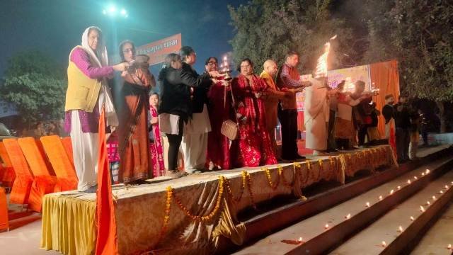लखनऊ। सनातन महासभा की ओर से मार्गशीर्ष पूर्णिमा पर सनातन समागम एवं 145 वीं आदि गंगा माँ गोमती महाआरती का आयोजन गुरुवार को झूलेलाल वाटिका, गोमती तट पर किया गया। मंगलाचरण, स्वस्तिवाचन, पुष्पांजलि व शंखनाद के साथ 07 भव्य मंचो से पूज्य स्वामी आनंद नारायण जी एवं स्वामी धीरेंद्र जी के सानिध्य में हुई। महाआरती में मृदंग, मंजीरा, ढोल, तासे, शंख की ध्वनि से पूरा प्रांगण गुंजायमान रहा। अध्यक्ष डॉ. प्रवीण ने बताया कि महाआरती के पूर्व पूर्णिमा पर नशा मुक्त प्रदेश बनाए जाने को लेकर सामूहिक संकल्प श्री गणेश वंदना के साथ प्रकृति संवर्धन हेतु गोमती बचाव अभियान को आगे बढ़ाने हेतु चर्चा की गयी।