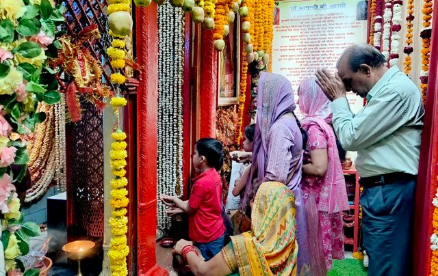 जैसे जैसे अष्टमी नजदीक आती जा रही है वैसे वैसे मंदिरों में श्रद्धालुओं की भीड़ उमड़ रही है। आज नवरात्रों के छठे दिन भी मंदिरों में लोगों का ताता लगा रहा जिसमें महिलाओं व बच्चों की संख्या अधिक रही। लोगों ने सुबह सवेरे मंदिरों में पहुंचकर भारी संख्या में मा भवानी की पूजा व अर्चना की। हर रोज की भाति आज भी शहर के विभिन्न मंदिरों में भक्तों की लम्बी.लम्बी लाइनें लग गई और कई घटों तक लोग मा भवानी के दर्शन करने के लिए खड़े रहे। शहर के अन्य मंदिरों के साथ-साथ ग्रामीण क्षेत्रों में भी स्थित मंदिरों में भक्तों की भीड़ लगी रही, जहा बड़ी संख्या में लोगों ने मां भवानी की पूजा.अर्चना की व मन्नतें मागी। लोगों नवरात्रों के उपलक्ष्य में व्रत भी रख रहे है। इस बीच श्रद्धालुओं द्वारा अष्टमी व नवमी के पर्व की भी जोरदार तैयारिया शुरू की जा रही है।