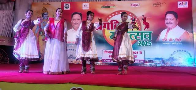 प्रगति महोत्सव 2025 में प्रगति इवेंट द्वारा प्रतिदिन निशुल्क सांस्कृतिक संध्या का आयोजन किया जाता है धनतेरस के शुभ अवसर पर झंकार संगीत विद्यालय जो की प्रयाग संगीत संस्थान से एफिलेटेड है, जिसकी निर्देशिका श्रीमती सुमन श्रीवास्तव के नेतृत्व में धनतेरस और दिवाली से गीतों के साथ विविध प्रकार के नृत्य एवं गायन की प्रस्तुति की गई बच्चों को कोरियोग्राफी चंचल चौहान ने की सोलो, डुएट तथा ग्रुप परफॉर्मेंस अच्युतम केशवम छाप, तिलक, तराना फिरों न नजरिया, मोहे रंग दे जैसे अनेकों शानदार प्रस्तुतियां की गई, अमला वर्मा, रक्षा त्रिपाठी, भार्गव मिश्रा गीत गुप्ता,, सहित अन्य कलाकारों ने अपनी जबरदस्त परफॉर्मेंस से सबको रोमांचित कर दिया इसी कड़ी में एस के डांस क्रिएशन जिसके निर्देशक सूरज कनौजिया के सफल नेतृत्व में अनेकों प्रस्तुतियां देखने को मिली सोलो डांस काहे छेड़े अरननदी , छोकरा जवान आयुषी यादव, बंदिशों तथा सांसों की माला प्रथम तिवारी, दिल दीवाना आयत, अपलम चपलम आराध्या सिंह, ग्रुप डांस राधा तेरी चुनरी आराध्या, पूजा ,नितिन, माही ,सृष्टि सोलो डांस के लिए बेजुबान कब से के लिए सरोज कनौजिया,आराध्या सिंह, शमा परवीन, आयत, आयुषी, अंशिका गुप्ता शानवी सिंह, शिवम तथा रीतिका द्वारा बहुत ही मनमोहक अंदाज में ग्रुप डांस प्रस्तुत किया गया। प्रगति इवेंट की उपाध्यक्ष एनबी सिंह दर्द सभी कलाकारों को प्रशस्ति पत्र पत्र देकर सम्मानित किया गया।