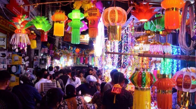लखनऊ। लखनऊ में अमीनाबाद से लेकर भूतनाथ बाजार की रौनक बता रही कि दीपावली आ गई है। बाजारों में जबर्दस्त भीड़ उमड़ी रही है। खासकर लोगों का जोर सजावटी सामान की खरीदारी पर दिखायी दे रहा है। दुकानदारों ने भी पिछली बार से कुछ हटकर चीजों से अपनी दुकानें सजाई हैं, जो ग्राहकों को आकर्षित कर रही हैं। ग्राहकों को पसंद आने वाली चीजों में मोतियों, स्टोन व नगों से बनी वंदनवार, साइड हैंगिंग शुभ-लाभ के तोरण, मोमबत्तियों और दीयों का विकल्प बनीं बैटरी वाली कैंडल लोगों को खूब आकर्षित कर रहीं हैं।