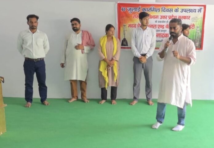 लखनऊ। कारगिल विजय दिवस के अवसर पर 26 जुलाई 2025 को संस्कृति निदेशालय, उत्तर प्रदेश के सहयोग से मदद एजुकेशनल एंड वेलफेयर सोसाइटी द्वारा देशभक्ति पर आधारित नाटक ‘शहीद’ का प्रभावशाली मंचन किया गया। यह आयोजन आर.पी.एस. इंटर कॉलेज, राजाजीपुरम, लखनऊ के सभागार में सम्पन्न हुआ।