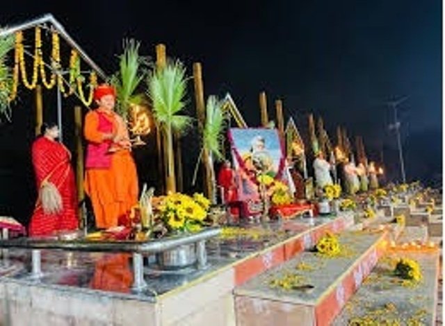 लखनऊ। नमोस्तुते मॉं गोमती के तत्वावधान मेंं हर माह की प्रत्येक माह में होने वाली मां गोमती की आरती के क्रम में आज शनिवार को पौष माह की शुक्ल पक्ष की पूर्णिमा को मॉं गोमती की आरती की गई। डालीगंज,गोमती के तट पर स्थित प्राचीन शिवालय श्रीमनकामेश्वर मंदिर की महंत देव्यागिरि जी महाराज की अगुवाई में उपवन घाट पर 11 वेदियों से आरती की गई । इस अवसर पर मॉ गोमती की सफाई की गई और साथ ही मॉ शाकम्बरी देवी की पूजा हुई और शिक्षक, समाज सुधारक श्रीमती सावित्री बाई फूले की जयंती भी मनाई गई। उनकी तस्वीर पर फूल-माला अर्पित कर उन्हें याद किया गया।