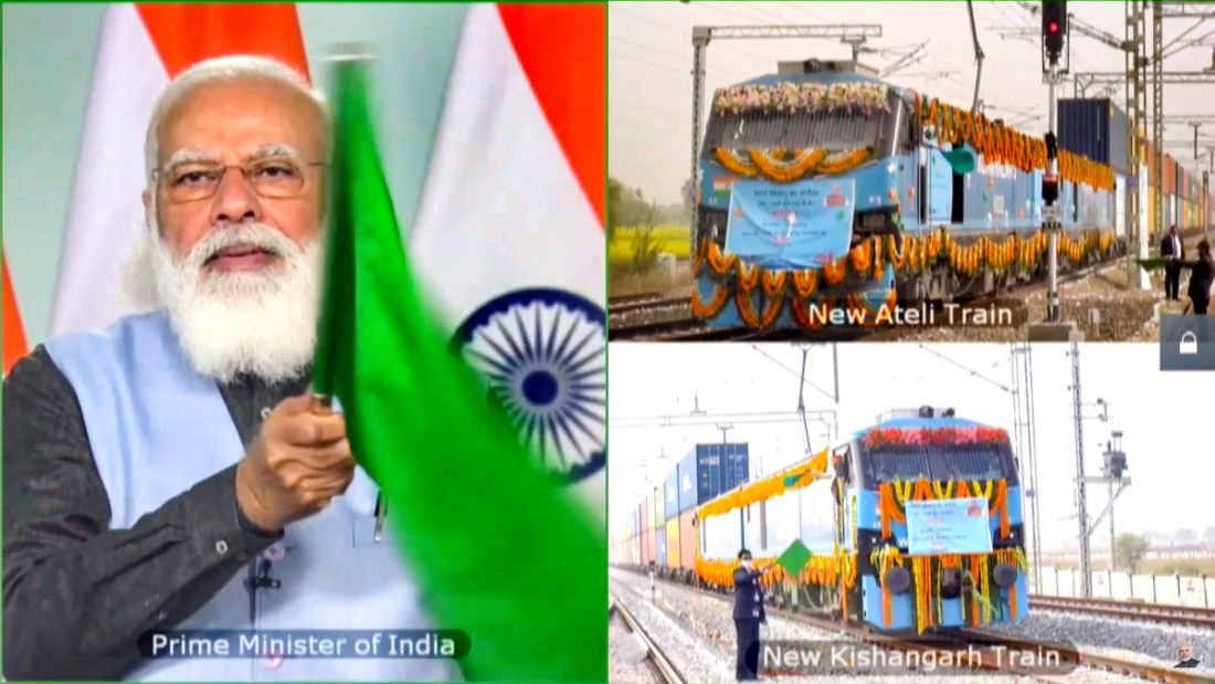 मोदी ने यह भरोसा पश्चिमी समर्पित मालवहन गलियारा (वेस्टर्न डेडीकेटेड फ्रेट कॉरिडोर) के 306 किमी लंबे न्यू रेवाड़ी-न्यू मदार खंड को राष्ट्र को समर्पित करने और न्यू अटेली से न्यू किशनगढ़ के लिए विश्व के पहले डबल स्टैक लांग हॉल कंटेनर ट्रेन आपरेशंस (1.5 किलोमीटर लंबी कंटेनर ट्रेन) को हरी झंडी दिखाने के बाद अपने संबोधन में व्यक्त किया।