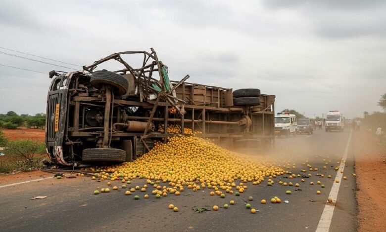 आंध्र प्रदेश। अन्नमय्या जिले में रविवार रात एक दुखद हादसा हुआ। आमों से भरे एक ट्रक के पलट जाने से 9 मजदूरों की मौत हो गई जबकि 10 अन्य घायल हो गए। मृतकों में 5 महिलाएं भी शामिल हैं। घायलों को राजमपेट के सरकारी अस्पताल में भर्ती कराया गया है।यह हादसा पुल्लमपेटा मंडल के रेड्डी चेरुवु कट्टा इलाके में हुआ, जो कडपा शहर से लगभग 60 किलोमीटर दूर स्थित है। पुलिस के अनुसार, आमों के ढेर के ऊपर बैठे मजदूर ट्रक के पलटने के बाद उसके नीचे दब गए, जिससे यह बड़ा नुकसान हुआ।