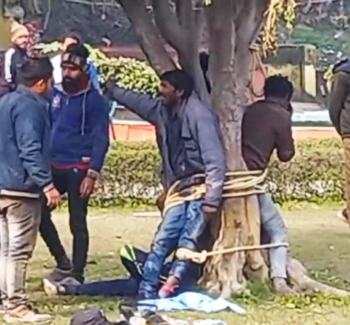 लेबर ने स्मैक पीने वाले युवकों पर कपड़े चोरी का आरोप लगाकर उनको पेड़ से बाध था। जिसके बाद उनके बताए स्थान से सामान ले लिया।