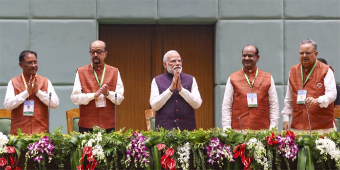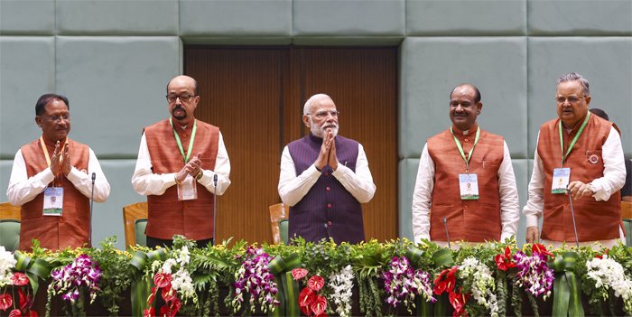 मोदी ने कहा कि सभी को सुनिश्चित करना होगा कि यहां से निकलने वाले हर विचार में जन सेवा की भावना हो, विकास का संकल्प हो तथा भारत को नयी ऊंचाइयों तक ले जाने का विश्वास हो।उन्होंने कहा, नयी विधानसभा भवन के उद्घाटन का असली महत्व हमारे इस सामूहिक संकल्प में है कि हम अपने कर्तव्यों को ईमानदारी से निभाएं और लोकतंत्र की भावना को बनाए रखें।