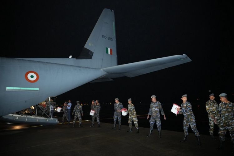 कोलंबो।श्रीलंका में अप्रत्याशित बाढ़ से विस्थापित लोगों के लिए आपातकालीन राहत सामग्री लेकर गया भारतीय वायु सेना का विमान शुक्रवार देर रात को श्रीलंका पहुंचा। जरूरी खाद्य सामग्री और स्वच्छता से जुड़ी आपूर्ति लेकर गया सी130 विमान देर रात लगभग डेढ़ बजे कोलंबो के भंडारनायके अंतरराष्ट्रीय हवाई अड्डा पहुंचा, जहां भारतीय उच्चायोग के अधिकारियों और श्रीलंका वायु सेना के अधिकारियों ने विमान का स्वागत किया।मुश्किल की इस घड़ी में श्रीलंका की मदद के लिए भारत ने शुक्रवार को ‘ऑपरेशन सागर बंधु’ शुरू किया और राहत सामग्री की पहली खेप भारतीय नौसेना के विमानवाहक पोत आईएनएस विक्रांत और आईएनएस उदयगिरि से श्रीलंका पहुंचाई गई।