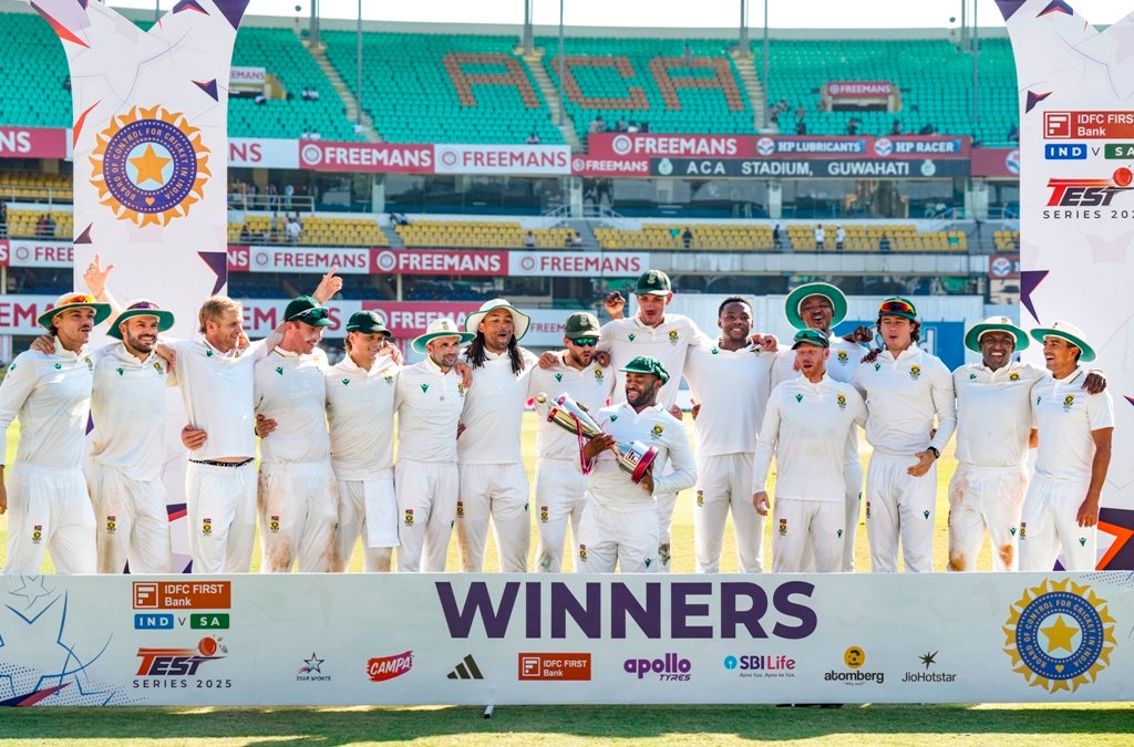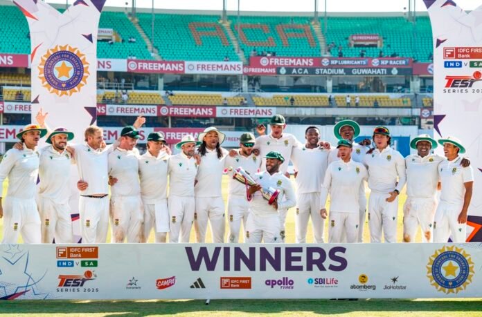 दक्षिण अफ्रीका ने अपनी दूसरी पारी पांच विकेट पर 260 रन बनाकर समाप्त घोषित की थी।मुख्य कोच गौतम गंभीर के नेतृत्व में, भारत अब तक घरेलू मैदान पर न्यूजÞीलैंड और दक्षिण अफ्रीका के खिलाफ पांच टेस्ट हार चुका है। पिछले 66 वर्षों में यह पहला अवसर है जबकि भारतीय टीम सात महीनों के अंतराल में पांच टेस्ट हार गई। भारत की तरफ से रविंद्र जडेजा ही कुछ संघर्ष कर पाए। उन्होंने 87 गेंदों में 54 रन बनाए।हार्मर ने पिच मुझे मिल रहे उछाल और टर्न का पूरा फायदा उठाकर अपने करियर का सर्वश्रेष्ठ प्रदर्शन करते हुए 37 रन देकर छह विकेट तथा मैच में कुल नौ विकेट लिए।एडेन मार्क्रम ने नौ कैच लेकर एक टेस्ट मैच में सर्वाधिक कैच का रिकॉर्ड बनाया।