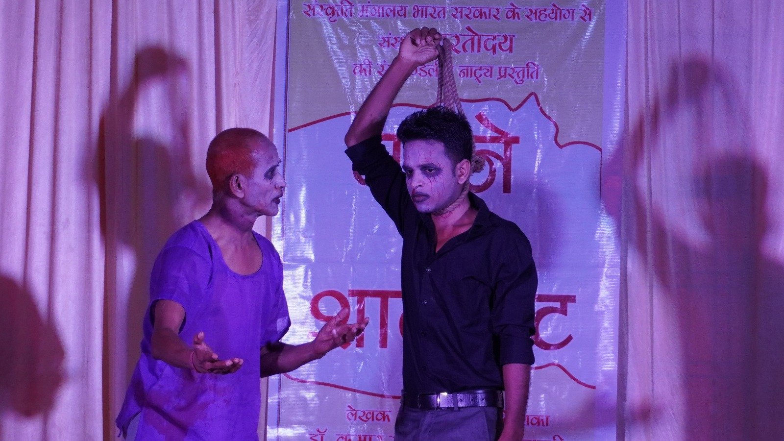 लखनऊ। संस्कृति मंत्रालय भारत सरकार, नई दिल्ली के सहयोग से भारतोदय संस्था द्वारा दो दिवसीय रंगमण्डलीय प्रस्तुति के अंर्तगत आज दूसरे दिन शांति इंटर कॉलेज, भरत नगर, लखनऊ के सभागार में नाटक ‘मरने के शॉर्टकट’ का मंचन किया गया। नाटक का लेखन डॉ. कुमार संजय एवं निर्देशन जूही कुमारी द्वारा किया गया। नाटक के माध्यम से कलाकारों ने दिखाया कि, क्या मुसीबतों से छुटकारा पाने का सबसे आसान तरीका आत्महत्या है? क्या आत्महत्या करने से सारी समस्याएं दूर हो जाती हैं? नहीं आत्महत्या कोई समाधान नहीं बल्कि मानव जीवन की सबसे बड़ी भूल होती है जिसे फिर मनुष्य चाहकर भी कभी नहीं सुधार सकता।