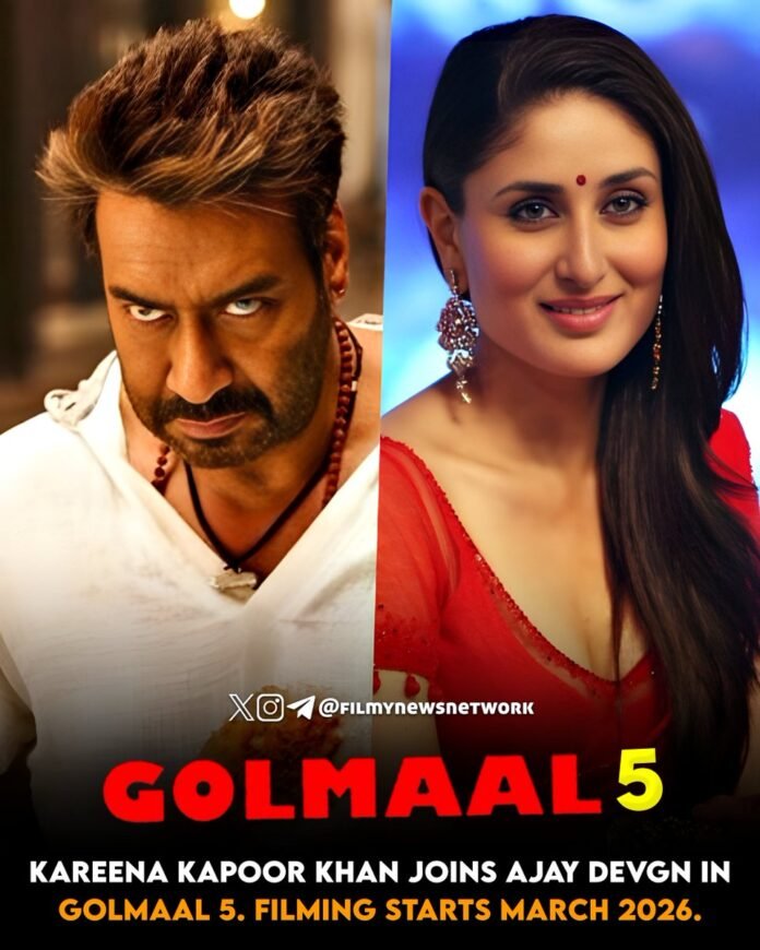 अजय ब्लॉकबस्टर गोलमाल फ्रैंचाइज़ी की पांचवीं किस्त के लिए निर्देशक रोहित शेट्टी के साथ फिर से काम करने जा रहे हैं। गोलमाल अगले साल मार्च में फ्लोर पर आएगी और 2027 में बड़े पर्दे पर रिलीज होगी। उम्मीद है कि करीना कपूर इस कॉमिक फिल्म में मुख्य भूमिका निभाएंगी। उनके साथ अरशद वारसी, तुषार कपूर, श्रेयस तलपड़े और कुणाल खेमू भी होंगे।