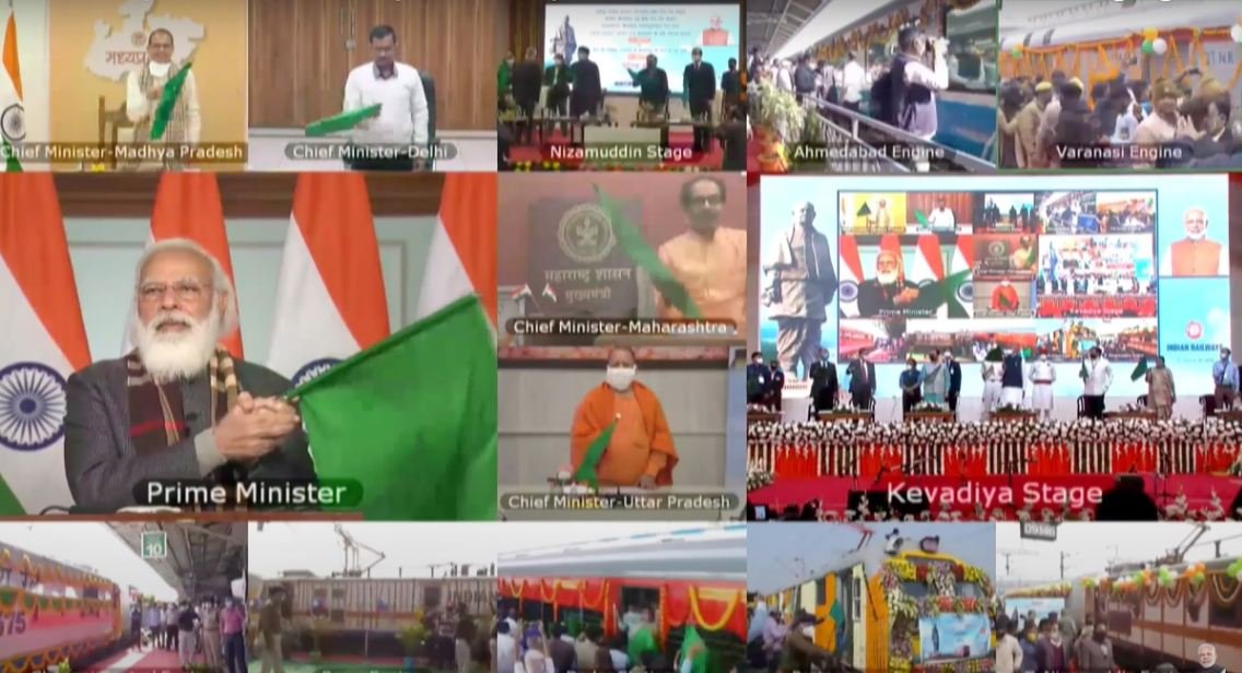 प्रधानमंत्री ने कहा, रेलवे के इतिहास में संभवत: पहली बार ऐसा हो रहा है, जब एक साथ देश के अलग-अलग कोने से एक ही जगह के लिए इतनी ट्रेनों को हरी झंड़ी दिखाई गई हो। मोदी ने कहा कि एक सर्वेक्षण के अनुसार आवागमन की सुविधाएं बढऩे से रोजाना एक लाख से अधिक लोग केवडय़िा आ सकेंगे। उन्होंने कहा कि देश के रेलवे बुनियादी ढांचे के आधुनिकीकरण के लिए हालिया वर्षों में किया गया कार्य अभूतपूर्व है।