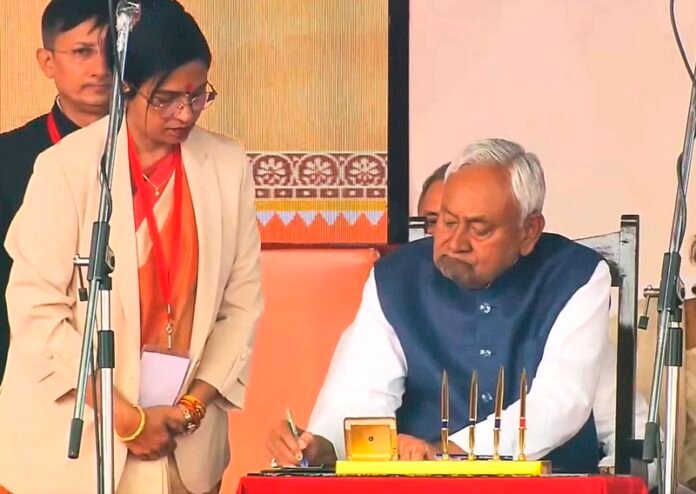 पटना। बिहार की राजनीति में एक ऐतिहासिक क्षण दर्ज करते हुए जनता दल (यू) के सुप्रीमो नीतीश कुमार ने बृहस्पतिवार को पटना के ऐतिहासिक गांधी मैदान में रिकॉर्ड 10वीं बार मुख्यमंत्री पद की शपथ ली। यह अवसर न सिर्फ राज्य की राजनीति के लिए महत्वपूर्ण रहा, बल्कि राष्ट्रीय स्तर पर भी इसका व्यापक असर देखने को मिला। शपथग्रहण समारोह में देश की शीर्ष राजनीतिक हस्तियों की उपस्थिति ने इसे और अधिक भव्य बना दिया।