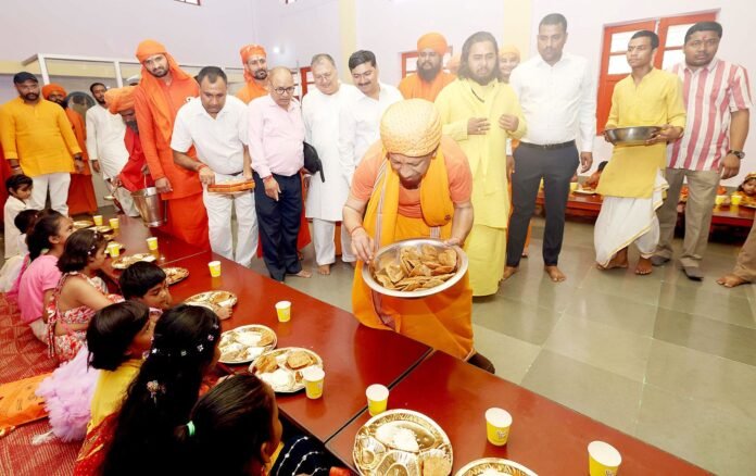 मुख्यमंत्री ने कन्याओं व बटुकों को अपने हाथों से भोजन परोसा