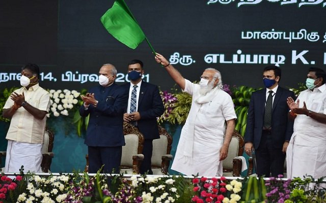 प्रधानमंत्री की संक्षिप्त यात्रा के लिए सुरक्षा उपायों के तहत यातायात को मोड़ा गया था और पुलिस कर्मियों की भारी तैनाती की गई थी। कार्यक्रम स्थल पर कई युवा मुख्यमंत्री की प्रशंसा करने वाले टीशर्ट पहने थे और कई ने मोदी और पलानीस्वामी की प्रशंसा करते हुए नारे लगाए। इससे पहले प्रधानमंत्री यहां हवाई अड्डे से आईएनएस अदयार हेलीकॉप्टर में सवार होकर समारोह स्थल पहुंचे।