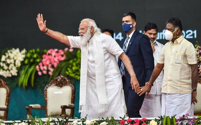 उन्होंने कहा, बूंद-बूंद के साथ ज्यादा फसल। कार्यक्रम में तमिलनाडु के राज्यपाल बनवारी लाल पुरोहित, मुख्यमंत्री के. पलानीस्वामी, उप मुख्यमंत्री ओ पन्नीरसेल्वम तथा मंत्रिमंडल के अन्य सदस्य, सत्तारूढ़ अन्नाद्रमुक के वरिष्ठ नेता एम थंबीदुरई, के पी मनुस्वामी और गठबंधन में शामिल दलों के नेताओं ने शिरकत की। नेहरू इंडोर स्टेडियम के परिसर से लेकर शहर के पेरियामेट इलाके में त्रिस्तरीय कड़ी सुरक्षा की गई थी।