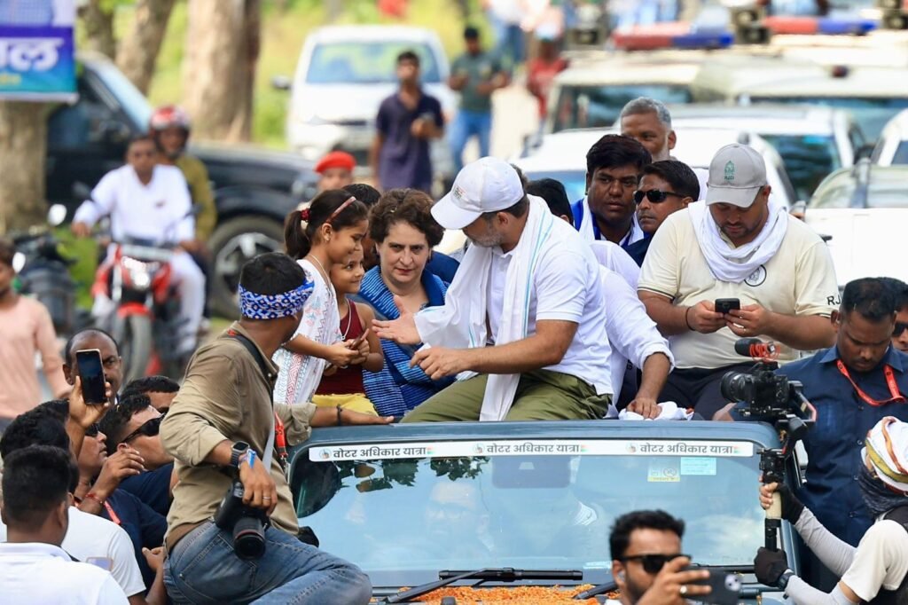 सुपौल (बिहार) । कांग्रेस की वरिष्ठ नेता प्रियंका गांधी वाद्रा मंगलवार को अपने भाई और लोकसभा में विपक्ष के नेता राहुल गांधी के साथ बिहार के सुपौल में जारी वोटर अधिकार यात्रा में शामिल हुईं । वाद्रा और गांधी, तेलंगाना के मुख्यमंत्री रेवंत रेड्डी, राष्ट्रीय जनता दल (राजद) के नेता तेजस्वी यादव और विपक्षी दलों के इंडिया (इंडियन नेशनल डेवलपमेंटल इंक्लूसिव अलायंस) गठबंधन के अन्य प्रतिनिधियों के साथ एक एसयूवी में बैठे देखे गए। वाहन धीमी गति से चल रहा था और नेता हाथ हिलाकर उत्साही भीड़ का अभिवादन करते दिखे।