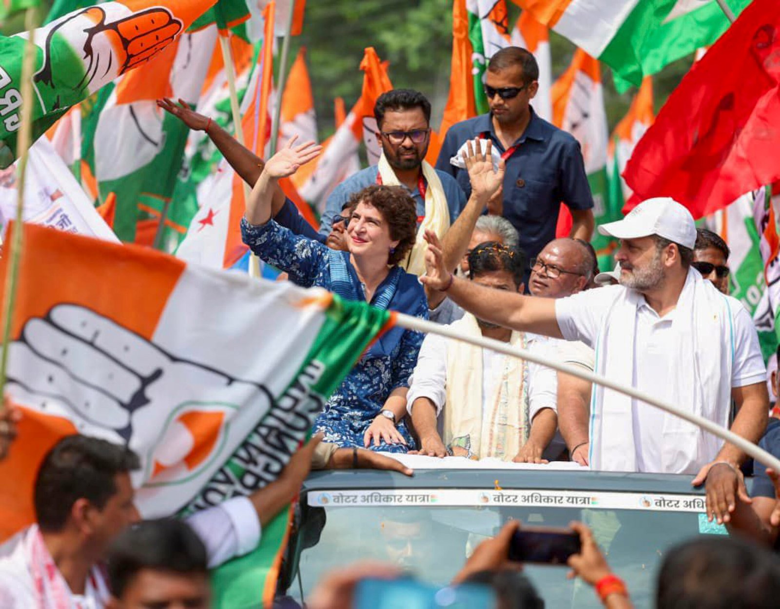सुपौल (बिहार) । कांग्रेस की वरिष्ठ नेता प्रियंका गांधी वाद्रा मंगलवार को अपने भाई और लोकसभा में विपक्ष के नेता राहुल गांधी के साथ बिहार के सुपौल में जारी वोटर अधिकार यात्रा में शामिल हुईं । वाद्रा और गांधी, तेलंगाना के मुख्यमंत्री रेवंत रेड्डी, राष्ट्रीय जनता दल (राजद) के नेता तेजस्वी यादव और विपक्षी दलों के इंडिया (इंडियन नेशनल डेवलपमेंटल इंक्लूसिव अलायंस) गठबंधन के अन्य प्रतिनिधियों के साथ एक एसयूवी में बैठे देखे गए। वाहन धीमी गति से चल रहा था और नेता हाथ हिलाकर उत्साही भीड़ का अभिवादन करते दिखे।