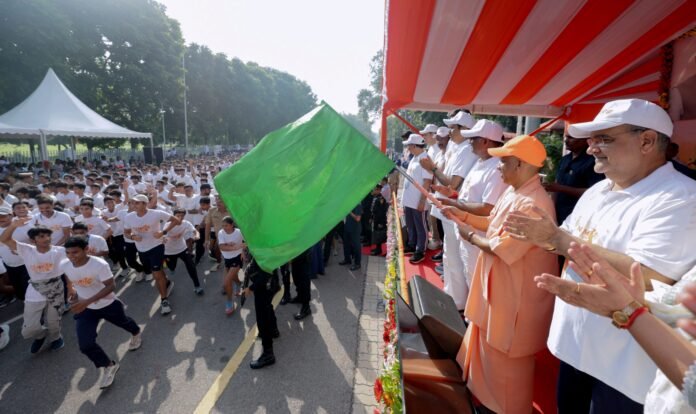 लखनऊ। प्रधानमंत्री नरेंद्र मोदी के जन्मदिन के अवसर पर मनाए जा रहे सेवा पखवाड़ा के तहत, उत्तर प्रदेश की राजधानी लखनऊ में रविवार को ‘नमो मैराथन’ का आयोजन किया गया। इस दौड़ को मुख्यमंत्री योगी आदित्यनाथ ने अपने सरकारी आवास, पांच कालीदास मार्ग से हरी झंडी दिखाकर शुरू किया और इसका समापन 1090 चौराहे पर हुआ। इस मैराथन में बड़ी संख्या में युवाओं ने उत्साहपूर्वक भाग लिया। यह मैराथन भाजपा द्वारा 17 सितंबर से 2 अक्टूबर तक चलाए जा रहे सेवा पखवाड़े का हिस्सा है। इसी कड़ी में, उत्तर प्रदेश के 16 महानगरों में भी इस दौड़ का आयोजन किया गया।