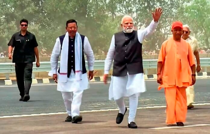 मोदी ने यहां 594 किलोमीटर लम्बे गंगा एक्सप्रेसवे का लोकार्पण करने के बाद अपने सम्बोधन में कहा कि पिछली सरकारों ने अपनी करतूतों के कारण अपराध और जंगल राज को उत्तर प्रदेश की पहचान बना दिया था और उत्तर प्रदेश के माफिया पर फिल्में बनती थी लेकिन अब उत्तर प्रदेश की कानून व्यवस्था का देशभर में उदाहरण दिया जाता है। उन्होंने खासकर सपा पर हमलावर होते हुए कहा, संसाधनों की बंदरबांट करने वाले जिन सपाइयों के हाथ से सत्ता गई है, उन्हें उत्तर प्रदेश की यह प्रगति पसंद नहीं आ रही है। वह एक बार फिर उत्तर प्रदेश को पुराने दौर में धकेलना चाहते हैं।