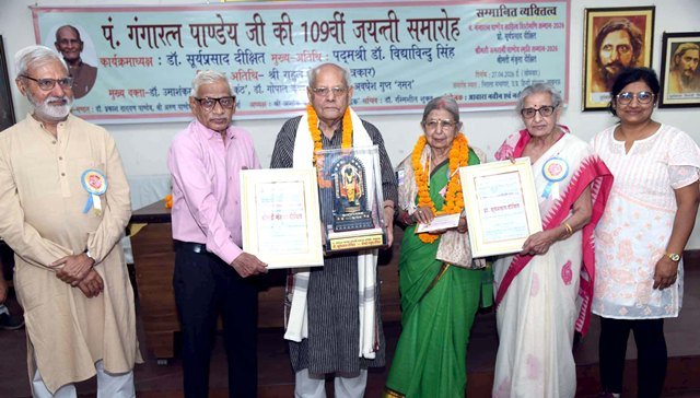 लखनऊ। पं. गंगारत्न पाण्डेय जी 109वीं जयंती सम्मान समारोह, 2026 का आयोजन हिंदी संस्थान, उ.प्र. के निराला सभागार में किया गया। पं. गंगारत्न पाण्डेय साहित्य शिरोमणि सम्मान, 2026 प्रो. सूर्यप्रसाद दीक्षित एवं जगरानी पाण्डेय स्मृति सम्मान, 2026 मंजुला दीक्षित जी को प्रदान किया गया। प्रो. दीक्षित ने कहा कि पाण्डेय जी का जीवन अत्यंत संघर्ष पूर्ण रहा। वे कुशाग्र विद्यार्थी, वरिष्ठ साहित्यकार, शिक्षक एवं अधिकारी रहे, परंतु इससे भी बढ़कर वे एक स्वतंत्रता संग्राम सेनानी रहे। उन्हें कभी पद लोलुपता नहीं रही, इसीलिए स्वतंत्रता के लिए संघर्ष किया परन्तु आजादी के बाद राजनीति से किनारा कर लिया। उनके जैसा व्यक्तित्व दुर्लभ है। मैं बहुत प्रसन्न हूं कि मुझे उनके नाम से सम्मान दिया जा रहा है, मैं इस समिति के सभी लोगों के प्रति हृदय से आभार व्यक्त करता हूं। पद्मश्री डॉ विद्याविंदु सिंह ने कहा कि पाण्डेय जी का व्यक्तित्व और कृतित्व अत्यंत प्रेरक है। सादा जीवन उच्च विचार के सिद्धांत को उन्होंने जीवन में अपनाया। वे कर्मठ और जुझारू स्वतंत्रता संग्राम सेनानी थे और शब्द ब्रह्म के मौन आराधक थे। स्वभाव से स्नेही थे कि जो भी उनसे एक बार मिलता तो सदा के लिए उनसे जुड़ जाता था। आज इस अवसर पर उनकी स्मृति को नमन करते हुए उन्हें श्रद्धा सुमन अर्पित करती हूं। वरिष्ठ पत्रकार राहुल देव ने कहा कि साहित्य और देश के अर्पित ऐसे महान व्यक्तित्व को मैं प्रणाम करता हूं और उनके नाम से ये पुरस्कार जिनको दिया जा रहा है, वह सर्वथा इसके सुयोग्य है। गुरुवर दीक्षित जी से हम सभी भलीभांति परिचित हैं। दीक्षित को इस ऊंचाई तक ले जाने में मंजुला दीक्षित का योगदान अवश्य ही रहा है, उन्हें सम्मान दिया जाना बहुत ही अभिभूत करने वाला है। ऐसा बहुत कम होता है कि उसे सम्मान दिया जाए जो किसी को आगे बढ़ाए। वास्तव में नींव की ईंट तो वही है। इस अवसर पर गंगारत्न पाण्डेय जी के व्यक्तित्व व कृतित्व पर डॉ उमाशंकर शुक्ल शितिकण्ठ, डॉ गोपाल कृष्ण शर्मा ‘मृदुल’, अवधेश गुप्त ‘नमन’ जी सहित अनेक विद्वानों ने अपने विचार व्यक्त किए। श्री अशोक कुमार पाण्डेय ‘अशोक’, डॉ दिनेश चंद्र अवस्थी, इं. सुनील कुमार वाजपेयी तथा नवीन शुक्ल ‘नवीन’ ने काव्य पाठ किया। कार्यक्रम में मुनेन्द्र शुक्ल, डा. उमेश चंद्र श्रीवास्तव, अनिल मिश्र, सुशील कुमार श्रीवास्तव, डॉ. योगेश गुप्त, तारावती विद्या’, ऋतुराज पांडेय ‘ऋषि’, आशुतोष पाठक, नेहा पाठक ‘प्रीति’, सक्षम, मनमोहन बाराकोटी, मृत्युंजय प्रसाद गुप्ता, सुनाक्षी, शिशिर नवीन आदि की उपस्थिति रही। शुभारंभ माँ वीणा पाणि की प्रतिमा, गंगारत्न पांडेय, जगरानी पांडेय के चित्र पर माल्यार्पण, दीप प्रज्ज्वलन एवम् डॉ. मोनिका पाठक द्वारा प्रस्तुत व
