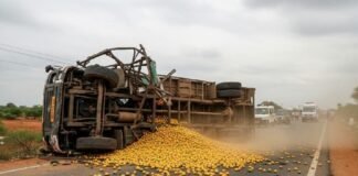 आंध्र प्रदेश में आमों से लदा ट्रक पलटा, 9 मजदूरों की...