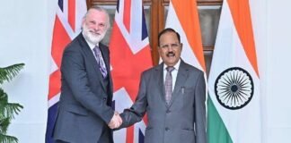 राष्ट्रीय सुरक्षा सलाहकार डोभाल ने ब्रिटेन के अपने समकक्ष के साथ...