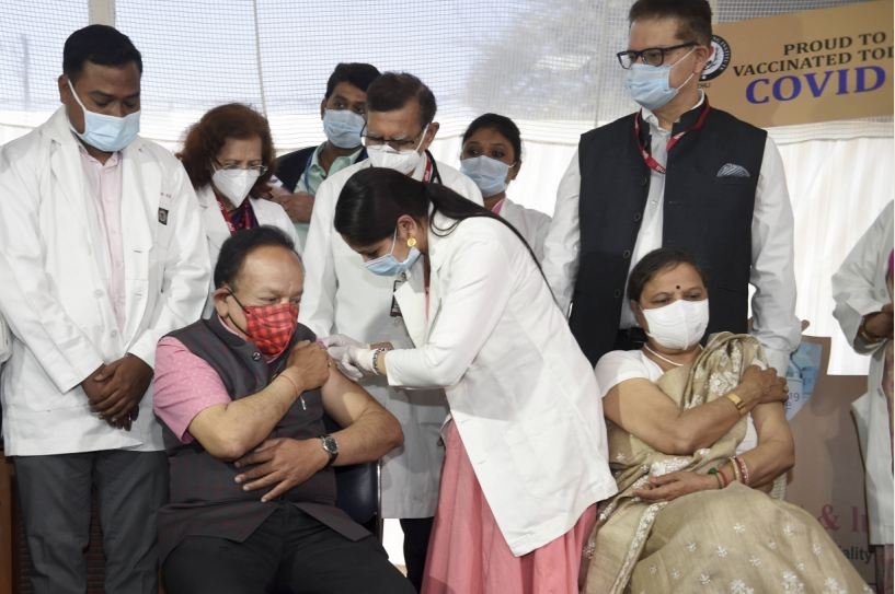 हर्षवर्धन और उनकी पत्नी ने लगवाया कोविड-19 रोधी टीका