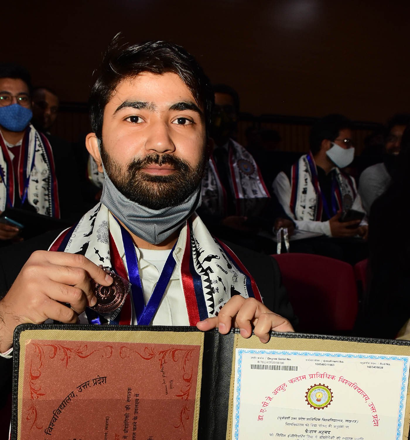 बीबीडी नेशनल इंस्टीट्यूट आफ टेक्नोलॉजी एंड मैनेजमेंट के मेधावी छात्र फैजान अहमद को सिविल इंजीनियरिंग से कांस्य पदक प्राप्त हुआ है। उन्होंने बताया कि बीबीडी में शैक्षिक माहौल बहुत अच्छा है। यहां पर शिक्षकों का सहयोग मिलता है। भविष्य में यूपीएससी के माध्यम से आईईएस और गेट की तैयारी करेंगे। इनके पिता अब्दुल कादिर सेवानिवृत्त वरिष्ठ बैंक प्रबंधक है और मां कनीज़ फातिमा गृहणी है। वह प्रतिदिन छह घंटे पढ़ाई करते थे। इनके परिवार में दो बड़े भाई बैक मैनेजर और एक बड़ा भाई आवास विकास परिषद में एक्जीक्यूटिव इंजीनियर है।