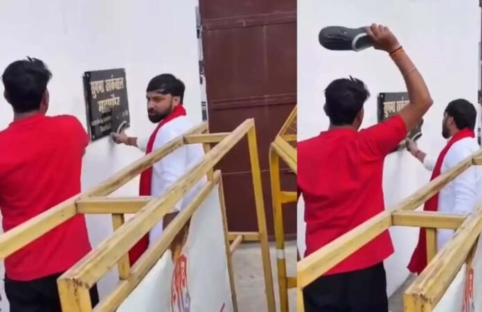 लखनऊ। राजधानी लखनऊ में सोमवार को समाजवादी पार्टी के कार्यकर्ता ने मेयर सुषमा खर्कवाल के आवास के बाहर विरोध प्रदर्शन किया। मेरठ निवासी सपा कार्यकर्ता गौरव चौधरी ने मेयर के घर पहुंचकर विरोध जताते हुए कालिख पोती और नेमप्लेट पर चप्पल मारकर अपना आक्रोश व्यक्त किया। घटना के बाद इलाके में कुछ देर के लिए तनाव का माहौल बन गया। सूचना मिलते ही पुलिस मौके पर पहुंची और स्थिति को नियंत्रित किया।