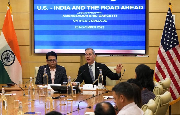 भारत-अमेरिका की टू प्लस टू वार्ता पर गार्सेटी ने कहा कि दोनों पक्षों ने प्रमुख रक्षा साझेदारी को मजबूत करने की दिशा में महत्वपूर्ण कदम उठाए हैं, जो औद्योगिक सहयोग और रक्षा में अमेरिका-भारत रोडमैप जैसी पहल के माध्यम से बढ़ती जा रही है तथा इसमें तेजी देखी जा रही है। उन्होंने भारत-अमेरिका तालमेल और उभरते क्षेत्रों में सहयोग की वकालत की।