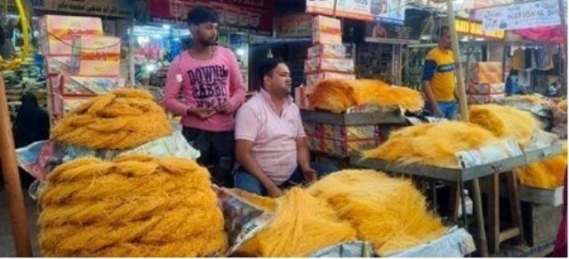 लखनऊ। बाजारों में की विदाई और ईद का इस्तकबाल शुरू हो गया है। ईद की आमद के साथ ही सेवईं का पूरा बाजार सज चुका है। इसी के साथ अलग-अलग किस्मों की सेवइयां भी बाजार की रौनक बढ़ा रही हैं। लखनऊ की महीन सेवईं हर साल की तरह बाजार में सबसे ज्यादा बिक रही है लेकिन लखनवी सेवइयों की तुलना में बनारसी सेवईं की इस बार ज्यादा डिमांड है। लखनवी सेवईं से ज्यादा बारीक होने के कारण किमामी सेवईं के लिए सबसे पहली पसंद बनारसी सेवईं बन चुकी है।मौलवीगंज के सेवईं व्यापारी अकरम ने बताया कि लखनऊ में बनने वाली सेवईं हल्की मोटी होती है जबकि किमामी सेवईं में बारीक सेवईं ली जाती है। इसलिए बनारसी सेवईं इसके लिए ज्यादा मुफीद मानी जाती है। इस बार बनारसी सेवईं में भी कई वेराइटी आ गई हैं। भट्ठी में भुनी सेवईं के अलावा इस बार ओवन में भुनी बनारसी सेवईं भी आई है जो एक रंग और एक सी पकी हुई है। यह भी खूब बिक रही है। जर्दे के शौकीन लोगों के लिए मजाफर सेवईं भी मिल रही है। इसके अलावा लखनऊ की पहचान महीन व मीडियम सेवईं तो इस बार भी सबसे ज्यादा बाजार में मौजूद है, जिसे दूर-दूर से लोग खरीदने के लिए आ रहे हैं।
