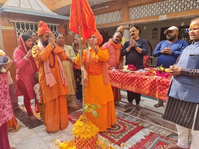 मदिर की साध्वी गौरजा गिरी और राधेश्याम ने मंत्र उच्चारण किया। श्रीमहंत ने ध्वजा की पूजा। श्रीमहंत ने भगवान का श्रृंगार किया और लड्डुओं का भोग लगाया। इस मौके पर मंदिर जय श्रीराम के जयकारों से गुंजायमान हो गया। मदिर की भक्त ममता, गीता, उपमा पांडेय, कावेरी के अलावा पीयूष, ने भगवान श्री राम के विवाह पर भजन गाए।