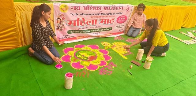 महिला माह के अंतर्गत नव अंशिका फाउंडेशन की रंगोली प्रतियोगिता बनी आकर्षण का केन्द्र