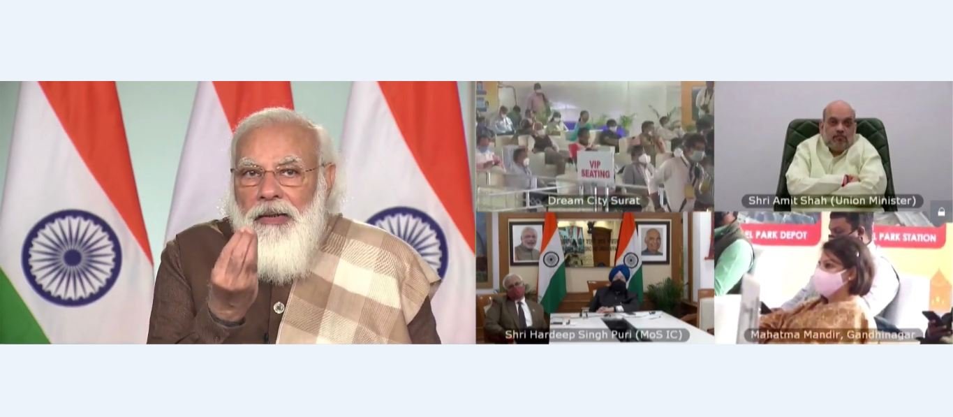 प्रधानमंत्री वीडियो कांफ्रेंस के माध्यम से आयोजित एक कार्यक्रम में भूमि पूजन कर अहमदाबाद मेट्रो परियोजना के दूसरे चरण और सूरत मेट्रो रेल परियोजना की आधारशिला रखने के बाद उपस्थित लोगों को संबोधित कर रहे थे। इस कार्यक्रम में केंद्रीय गृह मंत्री अमित शाह, गुजरात के राज्यपाल आचार्य देवव्रत, मुख्यमंत्री विजय रूपाणी और केंद्रीय शहरी विकास मंत्री हरदीप सिंह पुरी भी शामिल हुए।